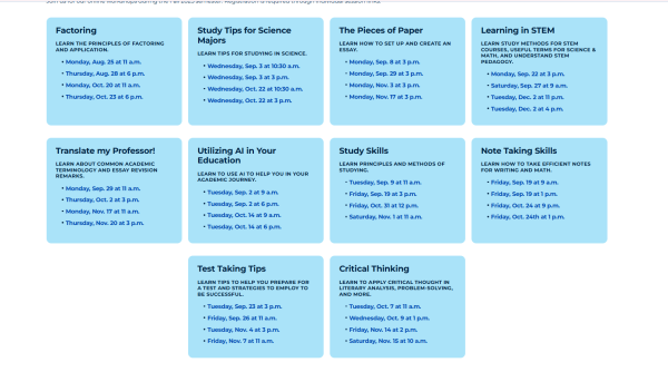 San Jac’s Student Success Center offers a range of workshops in varying subject matters. Students can access virtual 10 to 90-minute courses via Student Lingo by using their San Jac login information, and San Jac faculty offer in-person, hybrid, or virtual workshops.